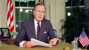 老布希出生於美國東部,耶魯大學畢業。後移居德州經營石油工業致富,歷任眾議員、駐中國首席代表、駐聯合國大使,台灣退出聯合國前曾建議繼續留下,可惜決定權不在台灣。後又當雷根時代的副總統,後選為總統。但連任時敗給新手柯林頓。